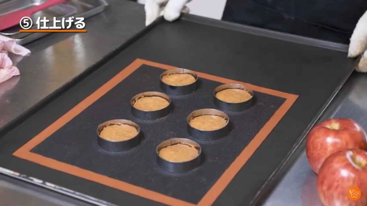 焼きりんごを型からはずし、ガレットブルトンヌの上にのせる。- 9