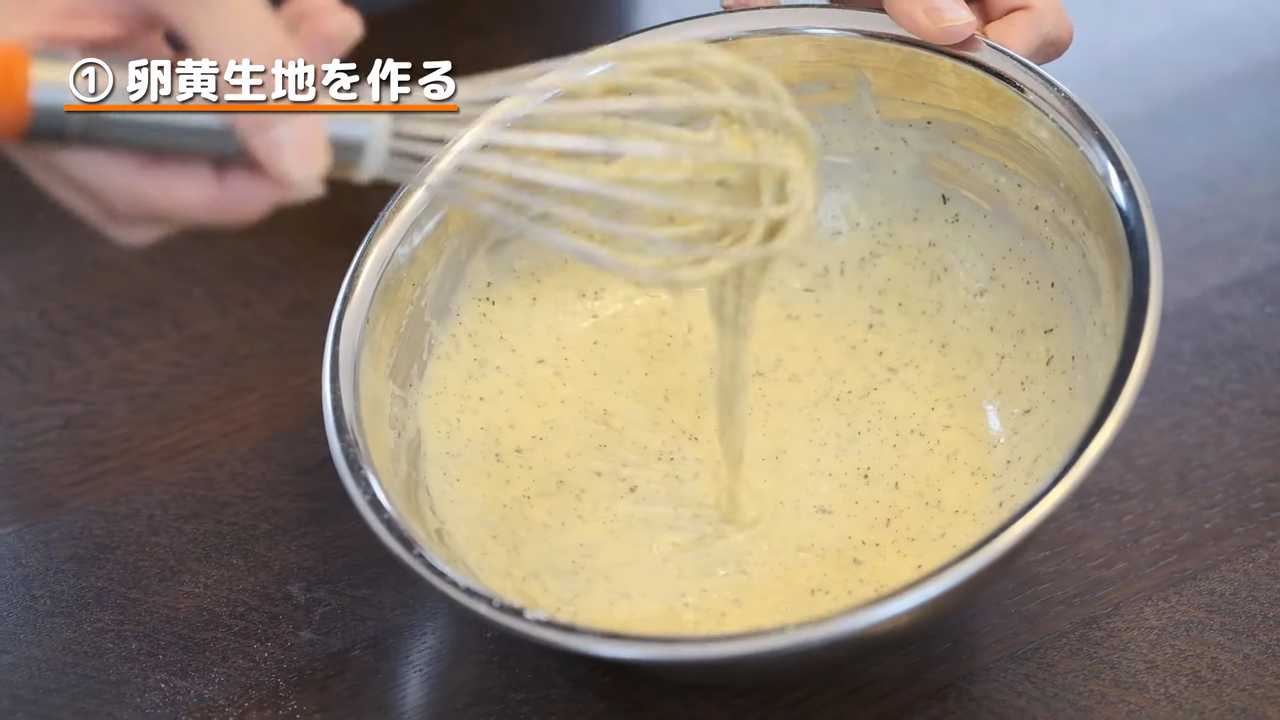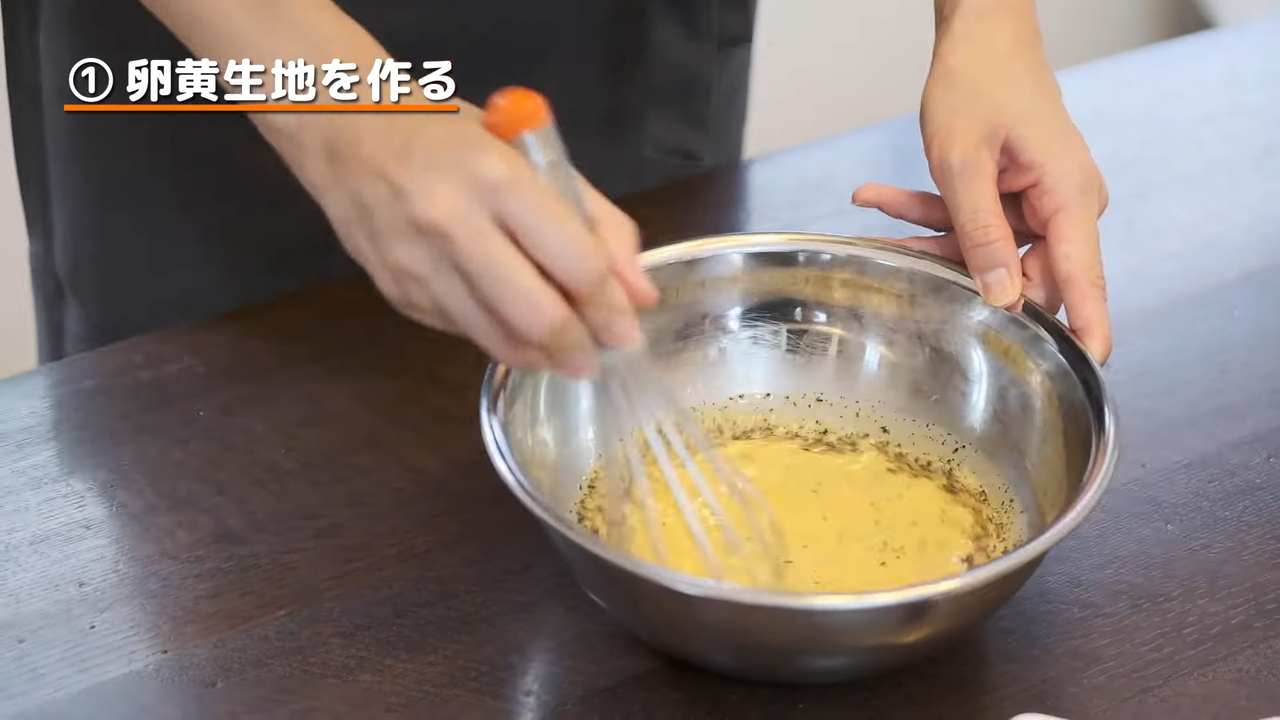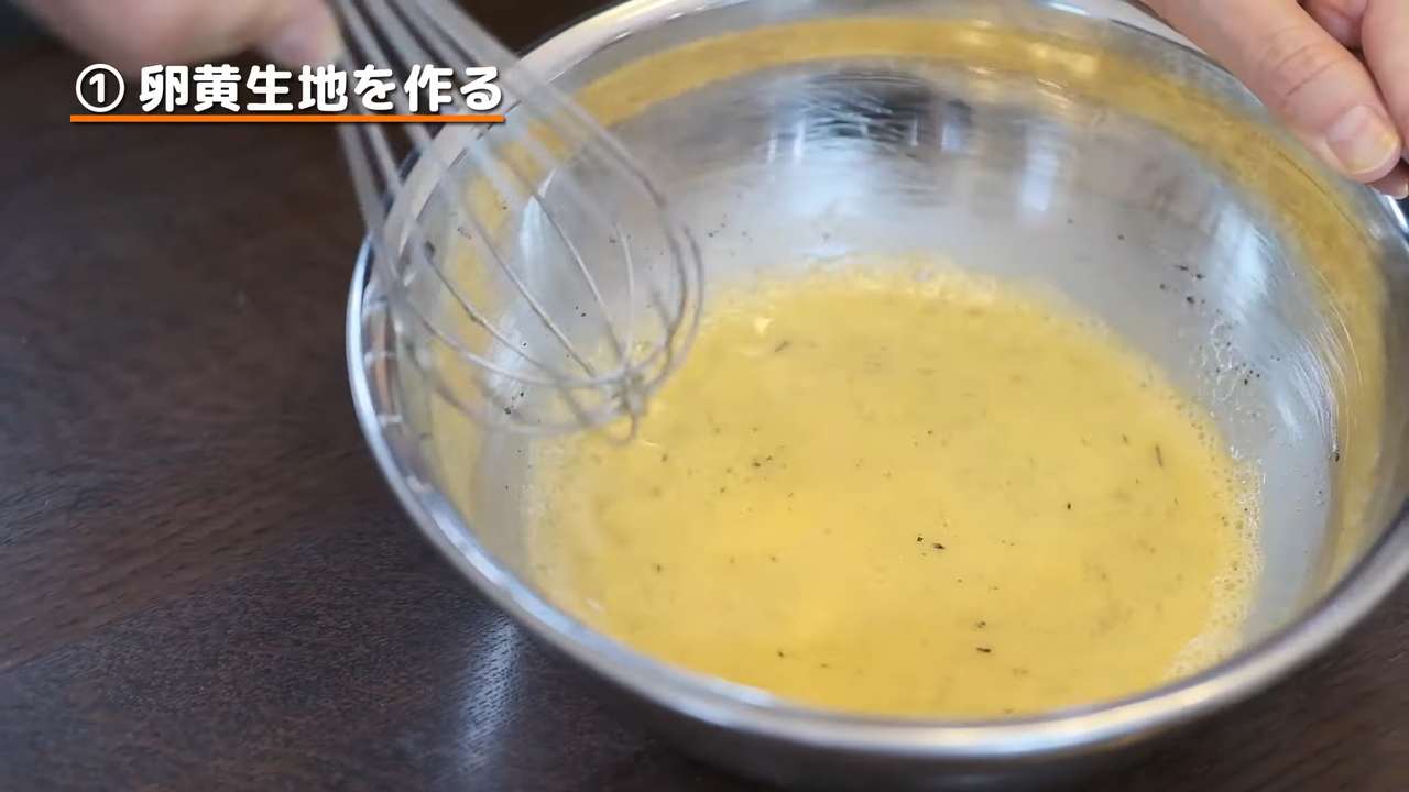 ※ボウルのふちに付いた卵黄を取りながら混ぜる。