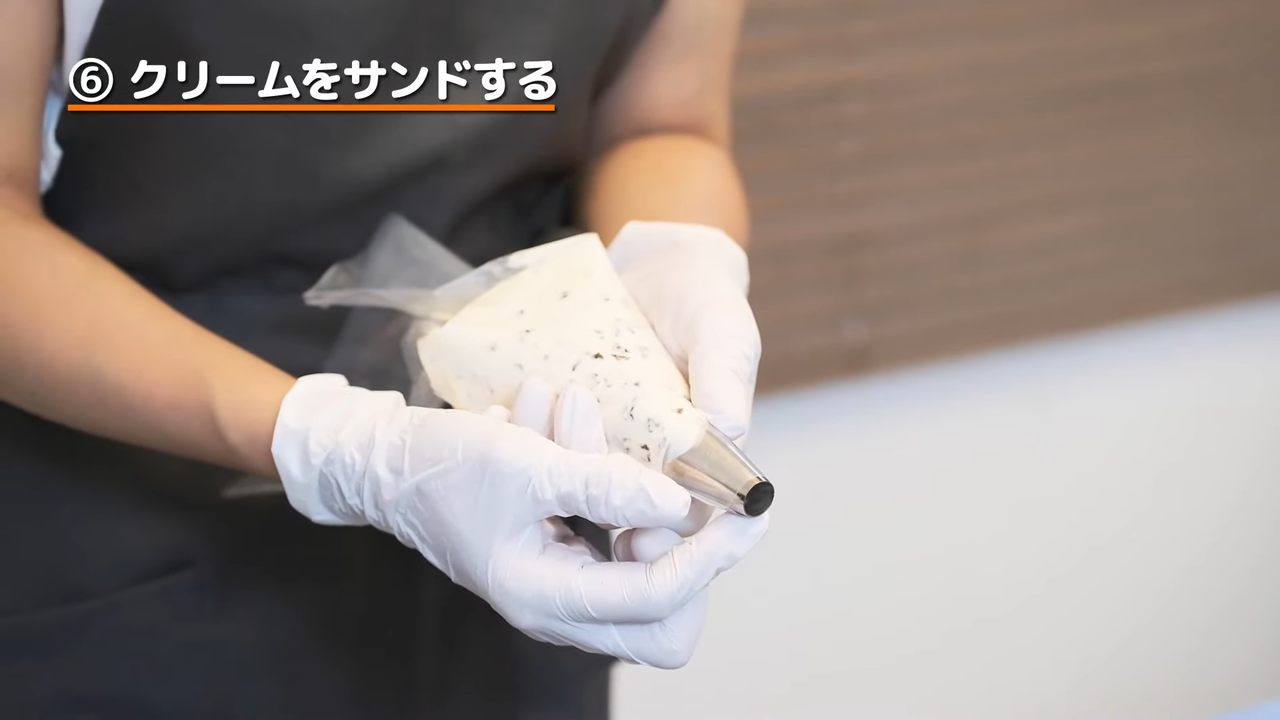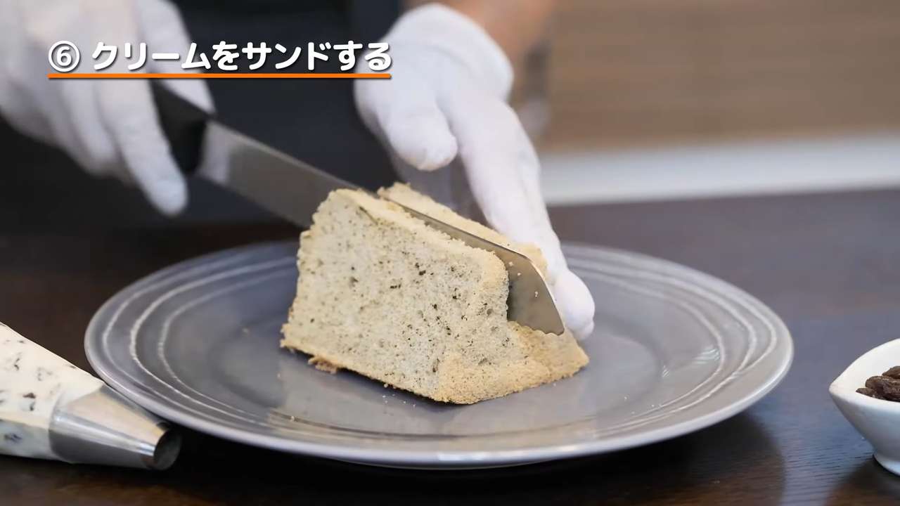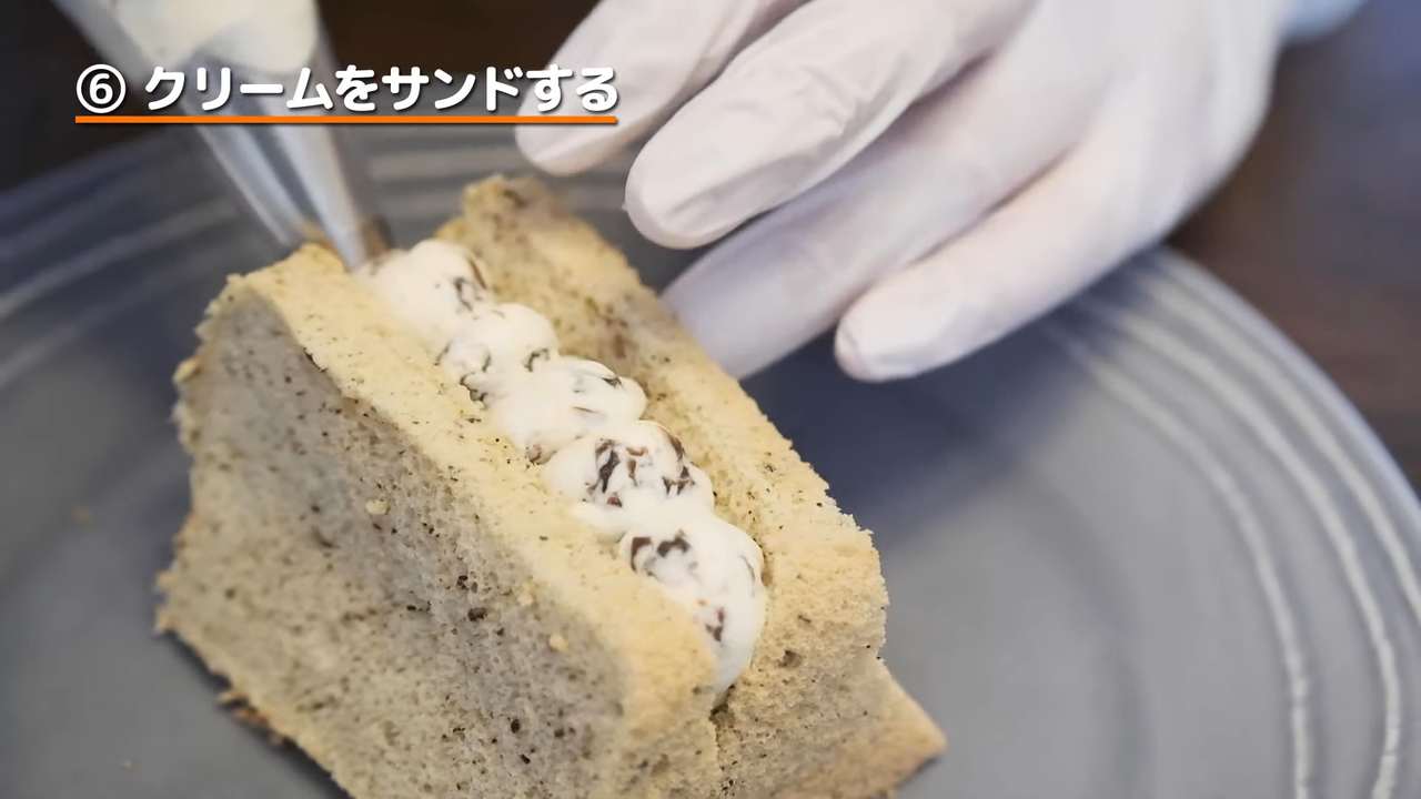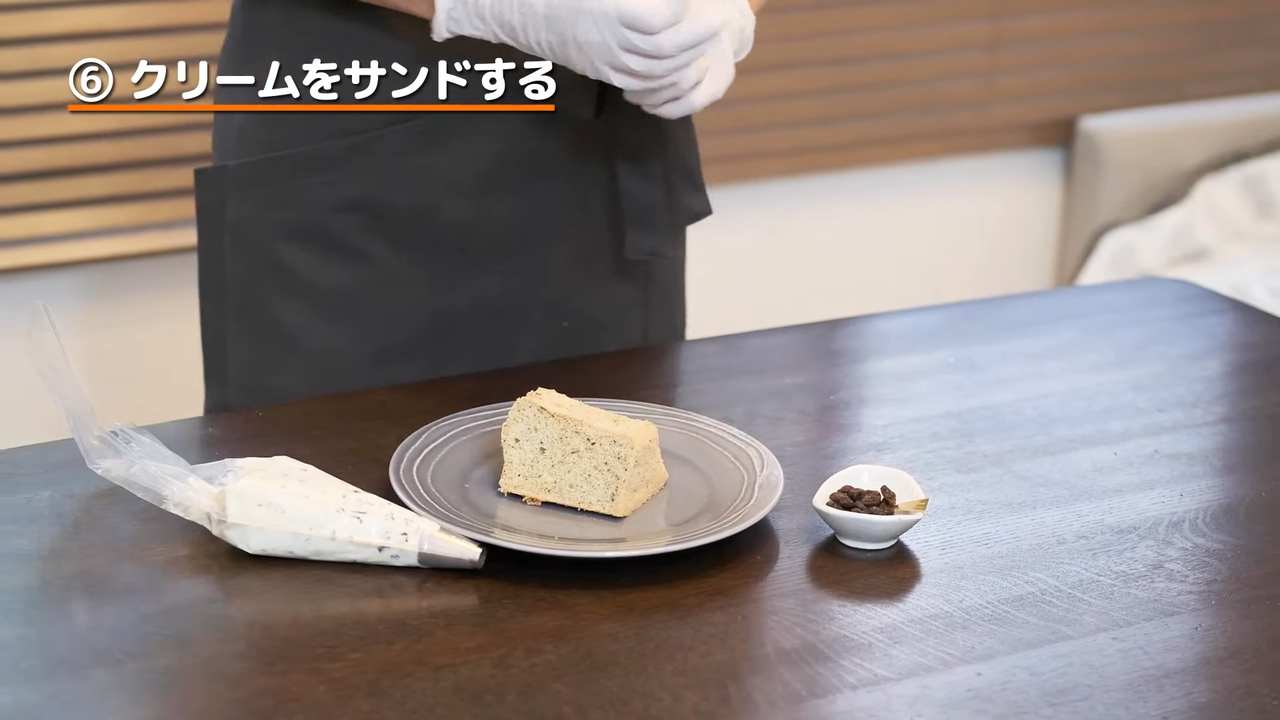 ※ラムレーズンクリームは、シフォンケーキを型抜きしたらすぐに絞れるように、型抜き前に準備するとよい。