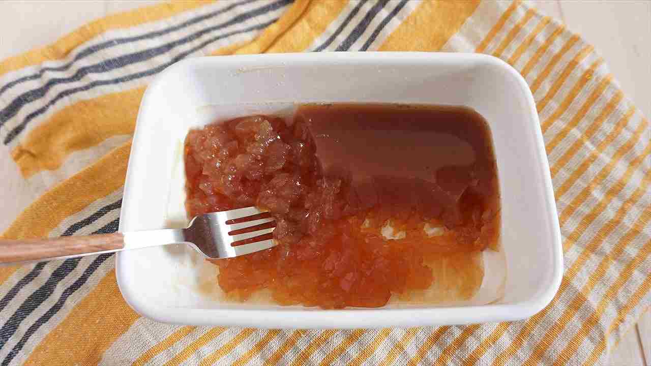 今回のレシピはゼリーにして固めるだけではなく、粗く潰してクラッシュゼリーに仕上げています。