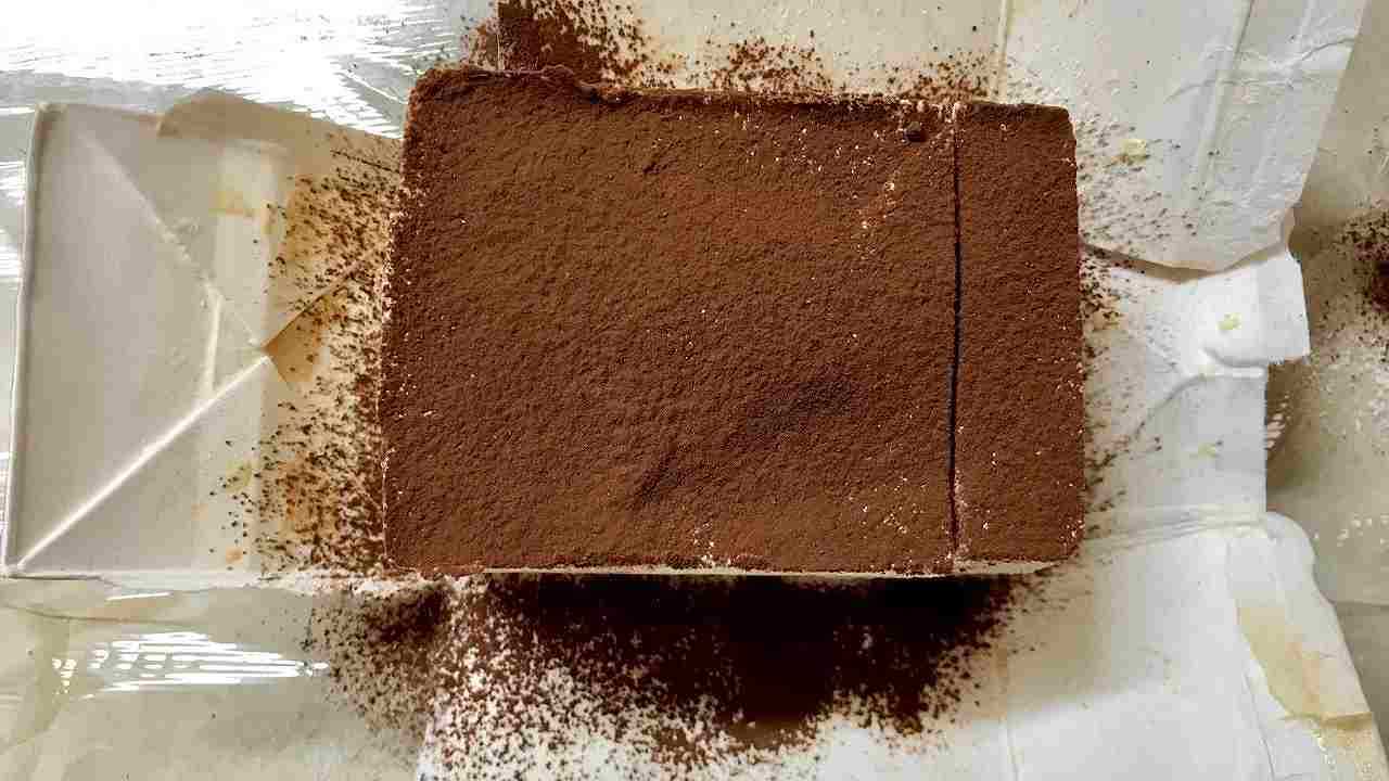 完全に固まったら牛乳パックから取り出し、ココアパウダーを振り、切り分けて召し上がりください。