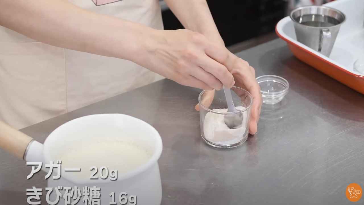 アガーときび砂糖を合わせてよく混ぜる。