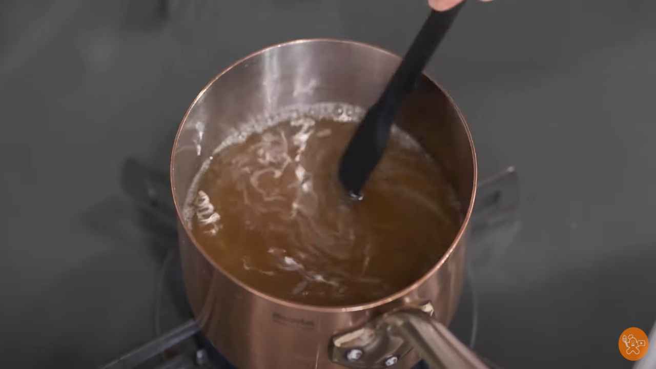 火を止めてアガーときび砂糖を入れ、ホイッパーですばやく混ぜて溶かす。- 3