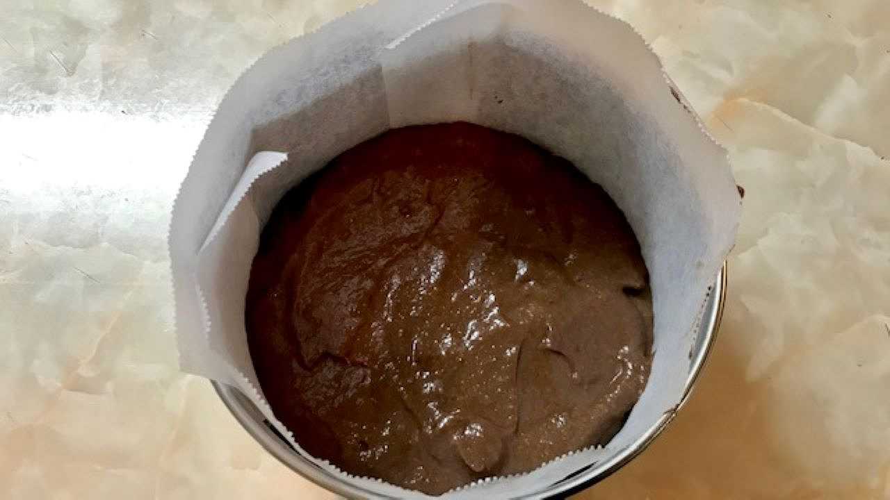 7を型に流し入れ、表面を平らにならします。布巾を敷いた台に底をトントンと打ちつけ、空気を抜いて170℃のオーブンで35~40分焼きます。