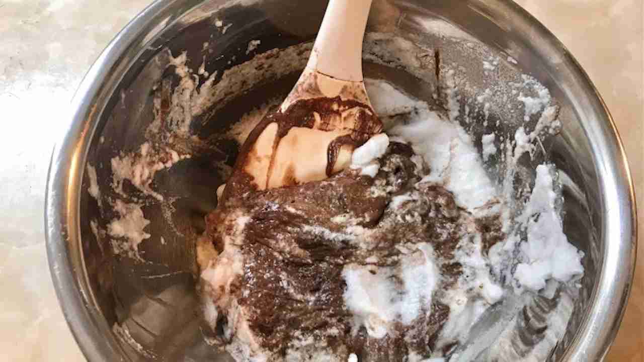 メレンゲの入ったボウルへ6を移して切るように混ぜ合わせます。