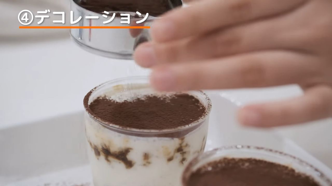 冷蔵庫から取り出してココアパウダーをふる。