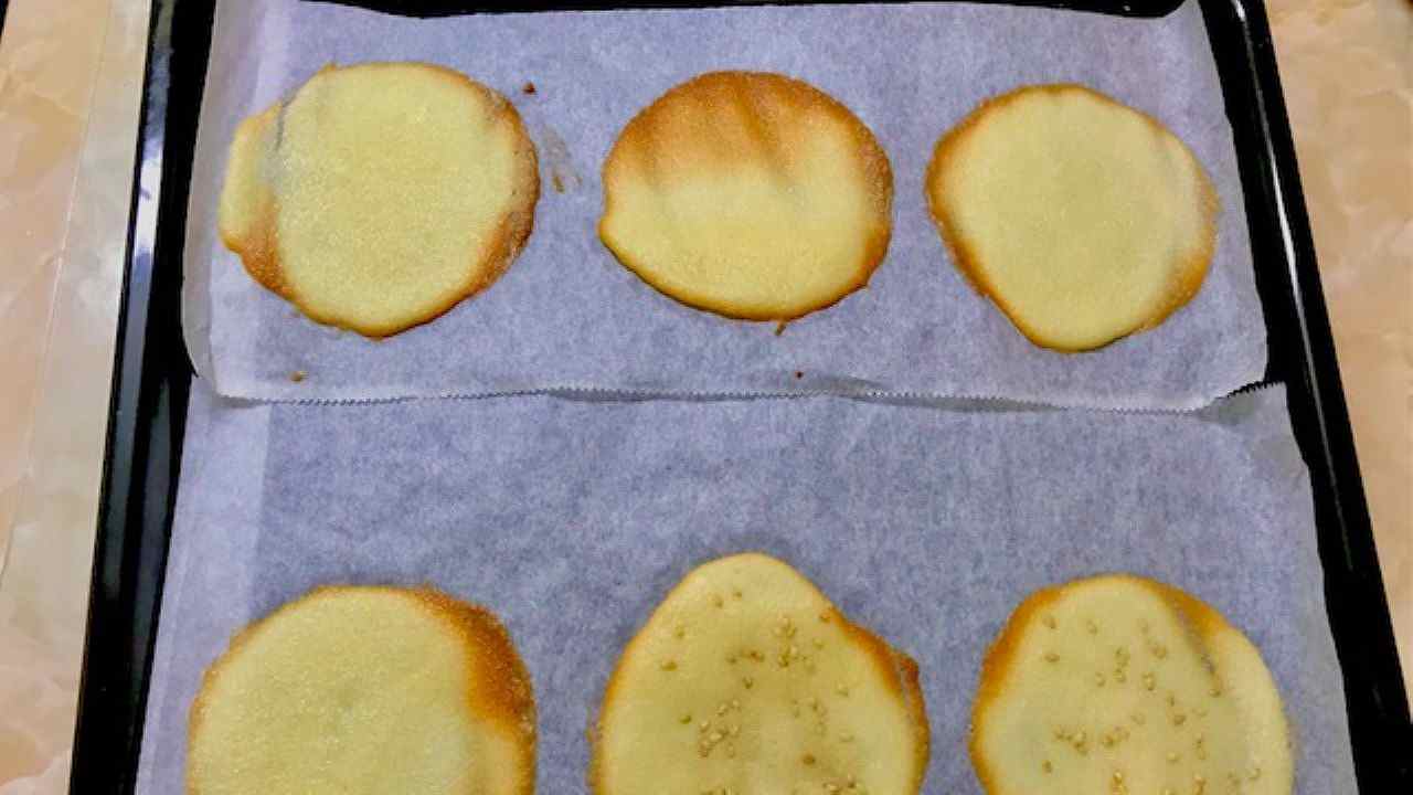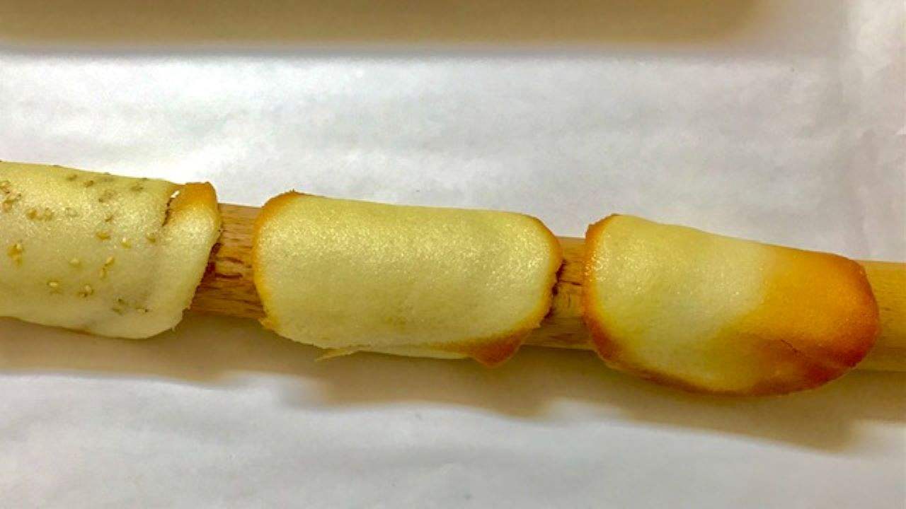 ○焼き上がりはしんなりしていますが、冷めるとパリパリになります。生地が柔らかいうちに手早く形を整えてください。熱いようであれば清潔な軍手を利用してください。