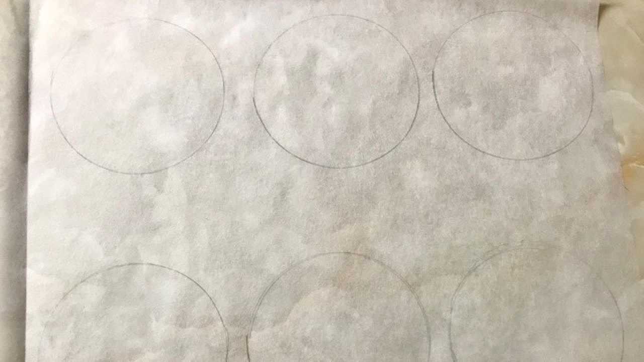 クッキングシートの裏側にセルクルや型を利用して円を描いておきます。