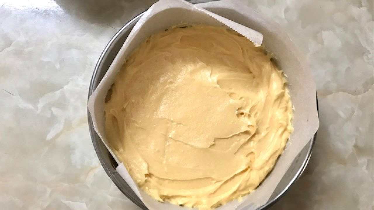型に生地を流し入れ、表面を平らにならします。