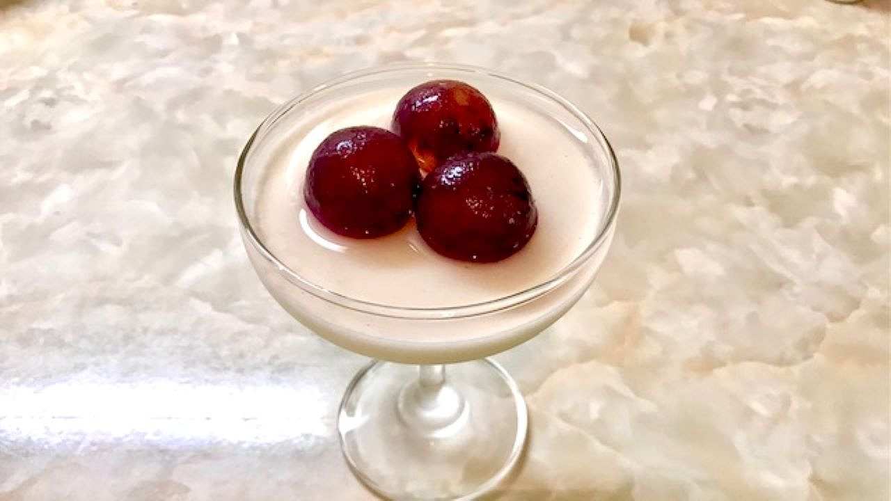 今回は、ヨーグルトと相性の良い酸味の効いたレモンゼリーと2層にし、旬の巨峰をトッピングしました。