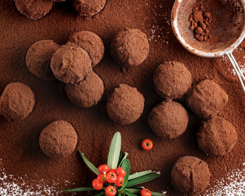 濃厚な生チョコにココアパウダーをまぶして仕上げる王道レシピ。カカオの香ばしくビターな風味が鼻から抜ける、とっておきの大人スイーツです。