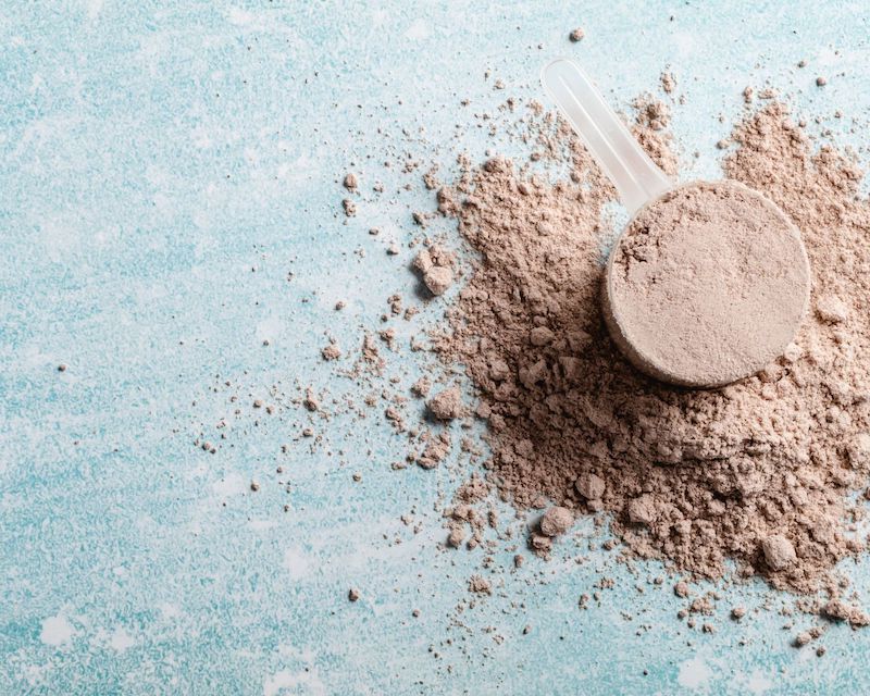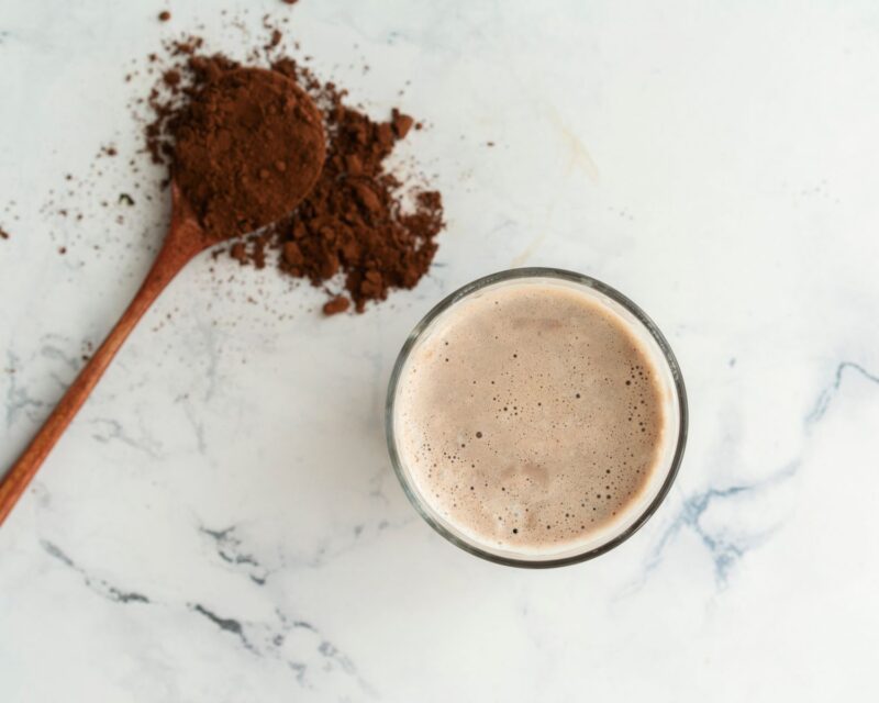 たんぱく質を効率的に摂取できるプロテインはさまざまなフレーバーがあり、チョコレート味やココア味はココアパウダーの代用になります。