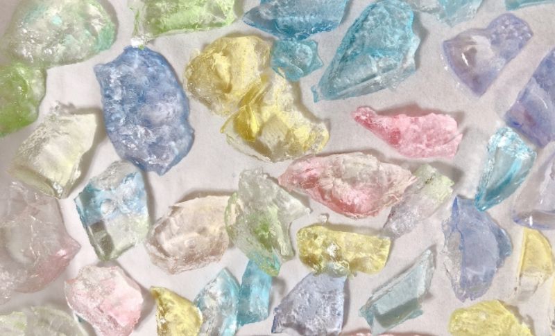 ちぎる、切るなどして綺麗な形になった琥珀糖(未完成)くん。