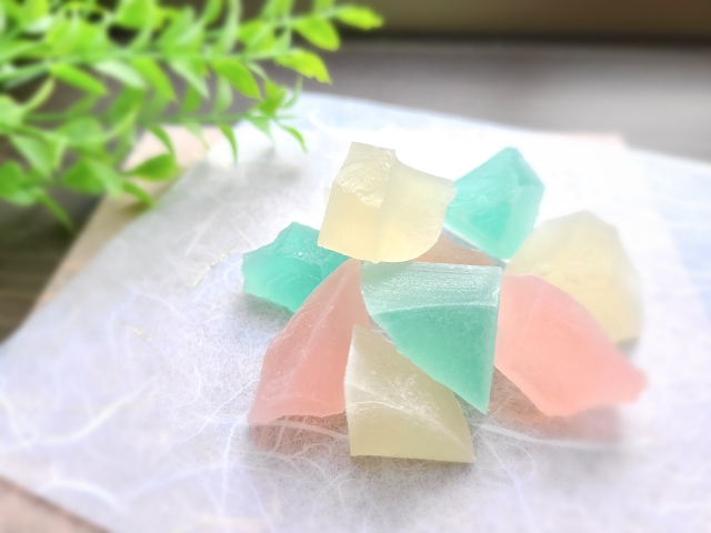 琥珀糖は材料を変えなくても、作り方一つで自分好みに調整することもできます。