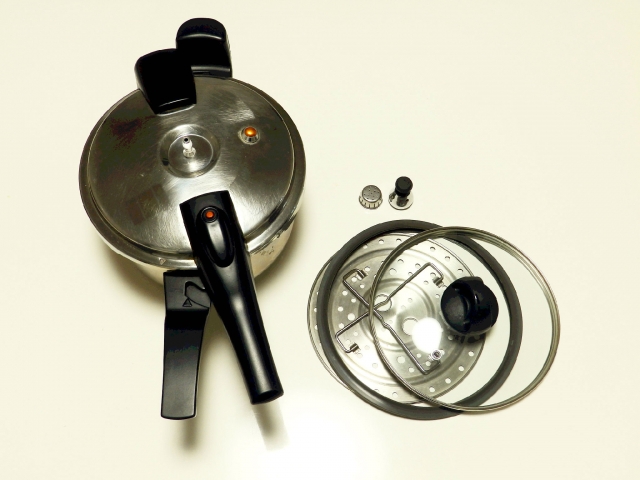 - 圧力鍋の蓋をセットして加熱。加圧時間は5分間。茹で上がったら火を止め自然減圧。