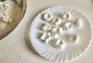 茹でる前の白玉団子は、水分が少なく白玉粉と水が一体化していない状態です。
