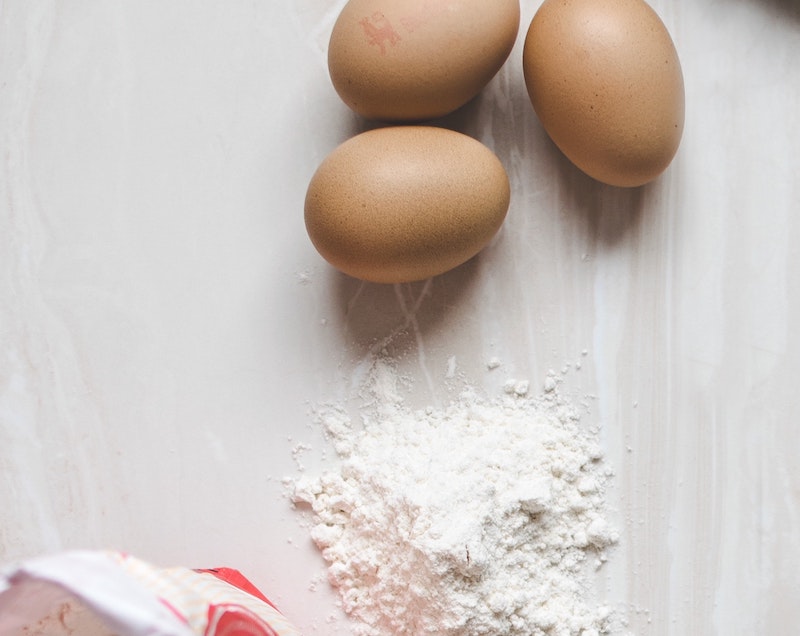 強力粉はパンなどに使われる粉で、焼きあがると生地もしっかりした食感に。