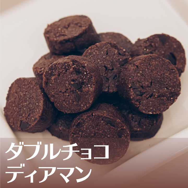 ディアマンクッキーは棒状に伸ばして冷蔵庫で冷やし、包丁でサクサク切って作ります。型を使う必要が無いので、簡単に大量に作ることができますよ。
