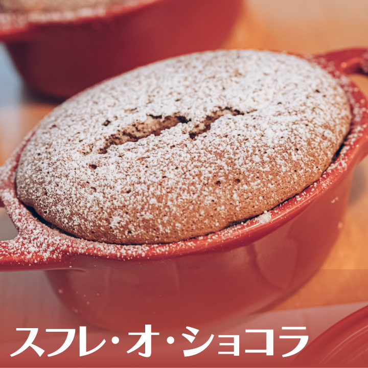 スフレ生地にチョコレートを混ぜ込むことで、スフレ・オ・ショコラになり、バレンタイン感を出すことができます。