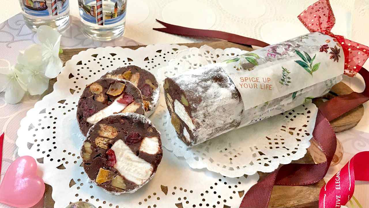 ナッツやドライフルーツたっぷり!なめらかチョコレートサラミ